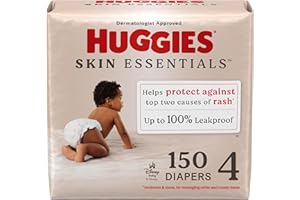 #1:Huggies Size 4 Diapers, Skin Essentials Baby Diapers, Size 4 (22-37 lbs), 150 Count (6 Packs of 25), Packaging May Vary
