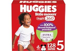 #1:Huggies Size 5 Baby Diapers, Little Movers HuggFit 360° Baby Diapers with 360° Waistband, Size 5 (27+ lbs), 128 Count (2 Packs of 64), Packaging May Vary