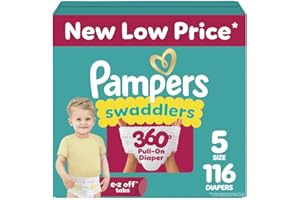 #1:Pampers Diapers - Swaddlers 360° - Size 5, 116 Count, up to 100% Leakproof Comfy Dry Fit, Designed for Easy Changes, Pull On Baby Diaper (Packaging May Vary)