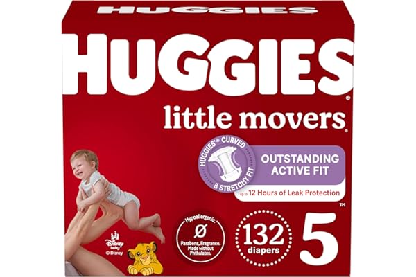 #1:Huggies Size 5 Diapers, Little Movers Baby Diapers, Size 5 (27+ lbs), 132 Count (2 Packs of 66), Packaging May Vary